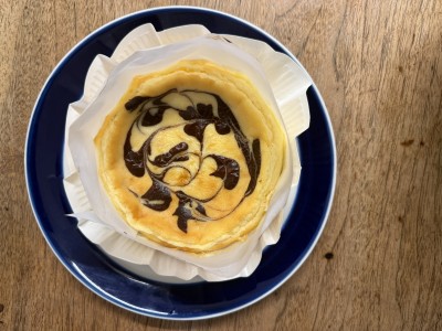 今日のメニューは「マーブルチーズケーキ」。